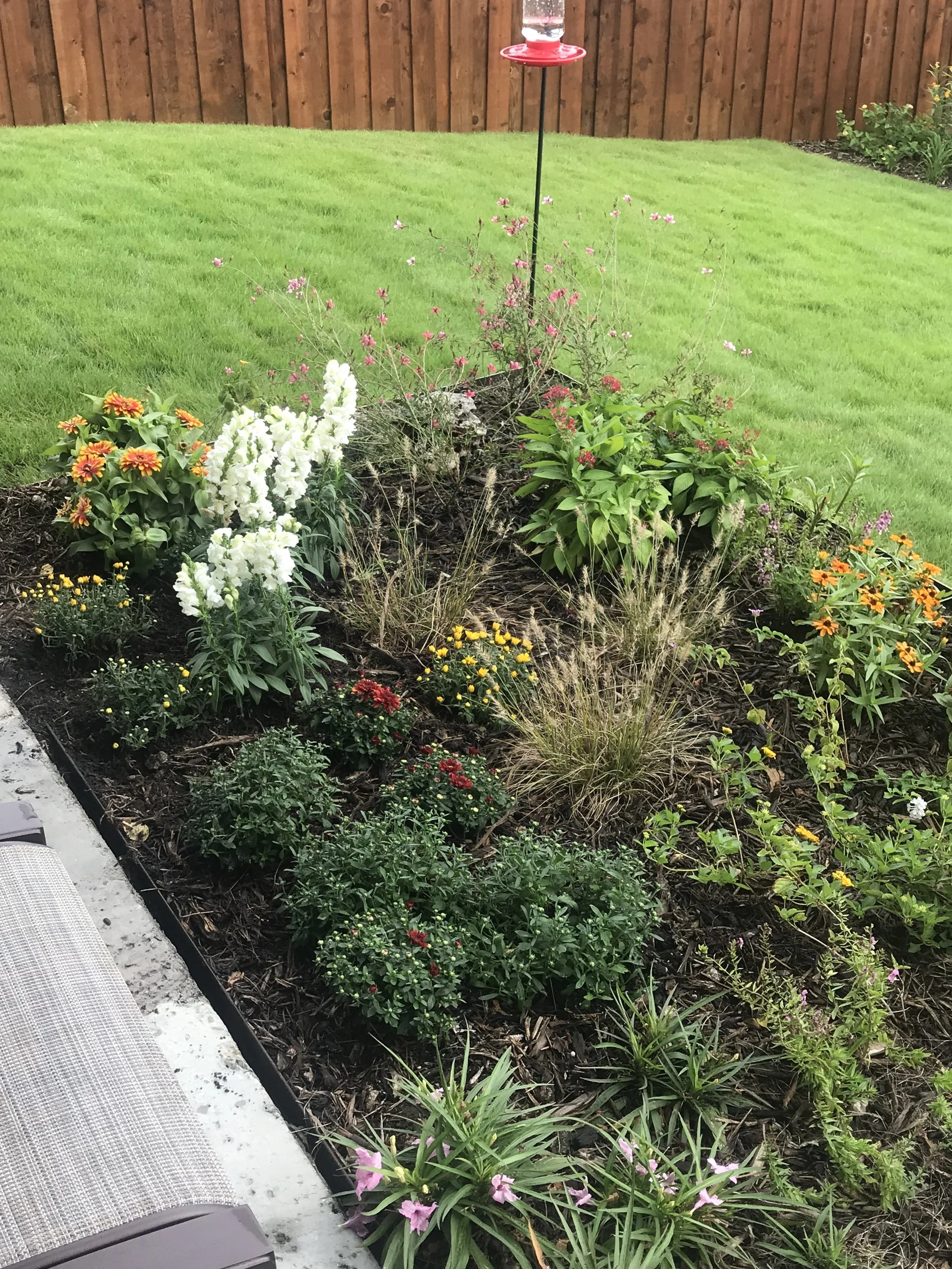 This modern landscape used diverse elements of metal, a water feature, and color to create a backyard oasis. The moon-gate was designed by one of our landscape designers and hand crafted by our metal fabricator. The gate puts a new, modern twist on an ancient Chinese tradition. It was important to the owner to have a family friendly yard for her grandchildren.